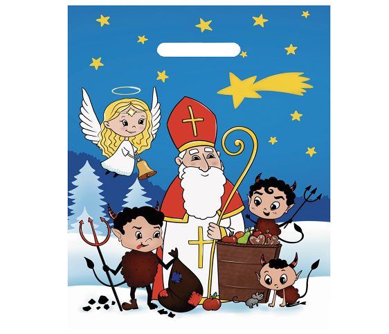 Bílá igelitová taška s průhmatem- potisk na přední straně- zadní strana bílá- ideální na mikulášskou nadílku pro děti- rozměr vhodný na adventní kalendář- materiál: LDPE- rozměr: 36 x 46 x 9cm- tloušťka: 50mic- složené dno