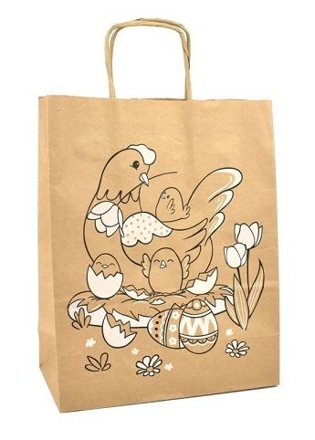 Taška papírová velikonoční, přírodní s uchem, 22x28x10 cm