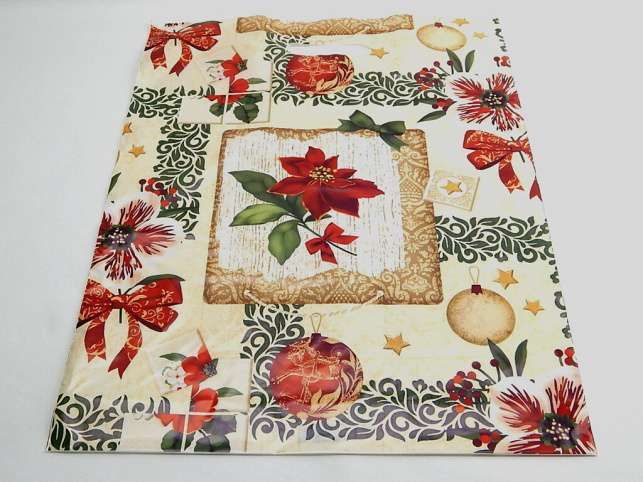 Taška PE Vánoční růže s mašlí 34x46 cm s průhmatem