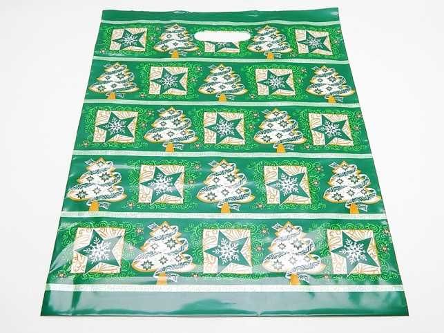 Taška PE Vánoční zelená fantazie 35x46 cm s průhmatem