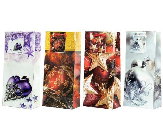 Vánoční dárková taška v provedení UV lak, papír 128g, ucha z bavlněné šňůrky- rozměr: 10 x 22 x 5,5cm- mix vzorů