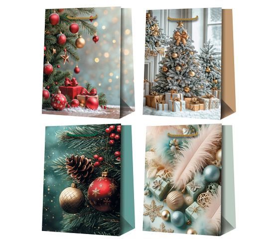Papírová dárková taška- ucha z bavlněné šňůrky- rozměry: 18 x 23 x 10cm - gramáž papíru: - mix vánočních motivů