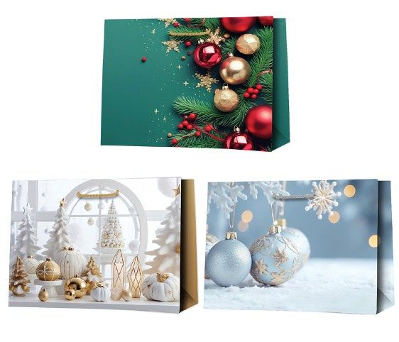 Vánoční dárková taška- UV lak- ucha z bavlněné šňůrky- rozměr: 23 x 18 x 10cm- gramáž: 128g/m2