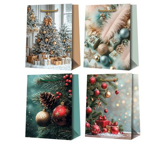 Papírová dárková taška- ucha z bavlněné šňůrky- rozměry: 26 x 32 x 13,5cm- gramáž papíru: - mix vánočních motivů