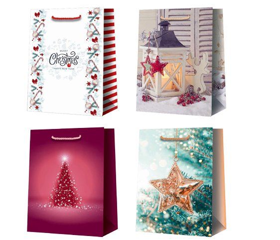 Vánoční dárková taška- UV lak- ucha z bavlněné šňůrky- rozměr: 33 x 45,5 x 10cm- gramáž: 157g/m2