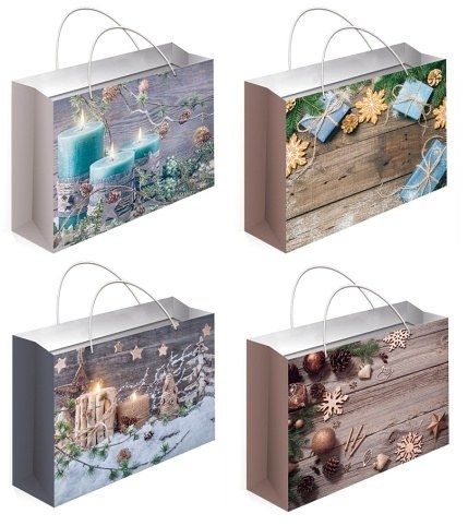 Taška vánoční dárková s glitry M 23 x 18 x 10 cm
