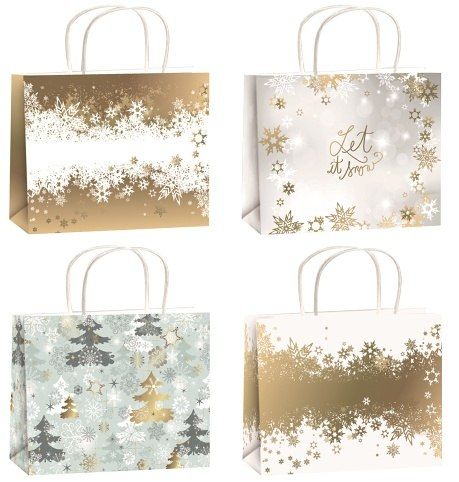 Taška vánoční dárková zlatá ražba M horizont 23x18x10cm