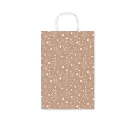 Taška vánoční kraft 16 x 21 x 8cm, bílé hvězdy