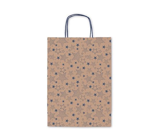 Taška vánoční kraft 16x21x8cm, modré hvězdy