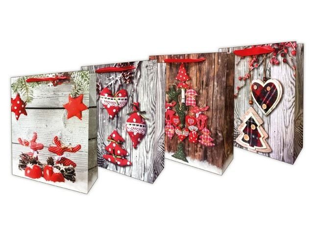 Papírová vánoční dárková taška s vánočními motivy - Každý dárek musí být v něčem zabalený. Pokud nemáte čas balit ho do balicího papíru, máme pro Vás na výběr nejrůznější dárkové tašky. Taška má pevné ucho pro snadné přenášení a štítek pro vepsání jména či přání. Povrchová úprava: UV lak Gramáž: 157 g Uvedená cena je za 1 ks.