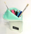 Designová taštička v pastelových barvách. Vhodná na kosmetiku, kancelářské a školní potřeby nebo další drobnosti. Pevné dno zajistí stabilní držení. Po otevření a přeložení horní části, slouží taštička jako stojánek na psací potřeby. Velikost 20,7x9,8x4,8 cm.