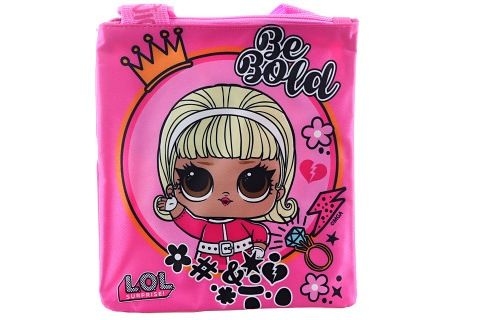 Taštička přes rameno s motivem L.O.L. Délka popruhu max 2x47 cm. Rozměry taštičky 18x20 cm. Baleno v sáčku. Zapínání na zip. Výrobek není hračka.