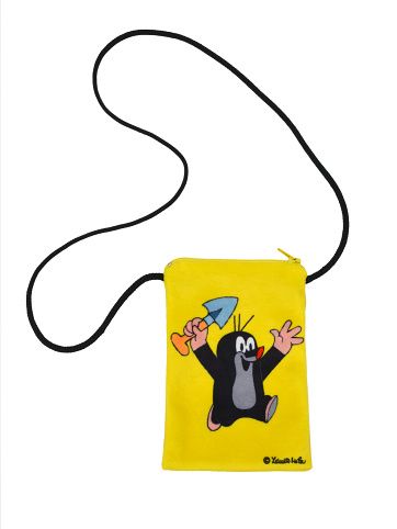 Látková taštička s motivem Krtečka se šňůrkou na krk a kapsičkou na zip. Rozměry taštičky: 15x10cm, délka šňůrky: 85cm. Pratelná.