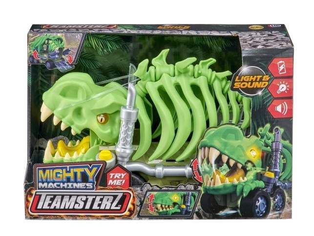 Poslechni si řev dinosaurů s Teamsterz auta T-Rex. Auto v designu T-Rexe se žlutým blikajícím okem a realistickými zvuky dinosaurů. Zatlač T-Rex dopředu, abys viděl čelisti. Ulož svá oblíbená auta do hrudního koše T-Rexe. Obsahuje 3 x AAA baterie. Vhodné pro děti od 3 let. Na baterie: 2x AAA (jsou součástí balení)