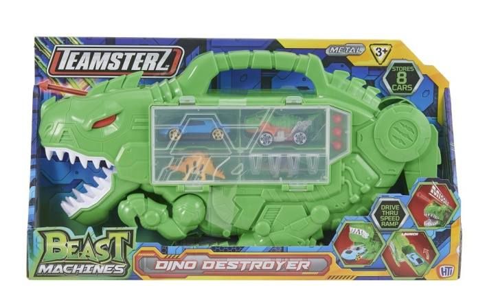 Teamsterz Beast Machines Dino Destroyer – prehistorická síla v moderním provedení! Když se minulost střetne s přítomností, vzniká Dino Destroyer – mohutný herní set z řady Beast Machines! Spusť svá autíčka vnitřní rampou přímo z útrob dinosaura a sleduj, jak vyjíždějí ven jeho nohama. Stisknutím tlačítka vystřelíš rakety z tlamy dinosaura a postaráš se o pořádnou dávku akce! Vlastnosti a funkce: Herní set s rampou uvnitř dinosaura – auta vyjíždějí z jeho nohou Tlačítko pro vystřelení raket z hlavy dinosaura Úložný prostor až pro 8 autíček Rukojeť pro snadné přenášení Volně pohyblivá kola pro samostatné hraní Obsahuje 4 ks vozidel Beast Machines s kovovými detaily a volně pohyblivými koly Pomáhá rozvíjet jemnou motoriku a kognitivní schopnosti Vhodné pro děti od 3 let Objev akční svět Beast Machines a ovládni prehistorickou sílu Dino Destroyeru!