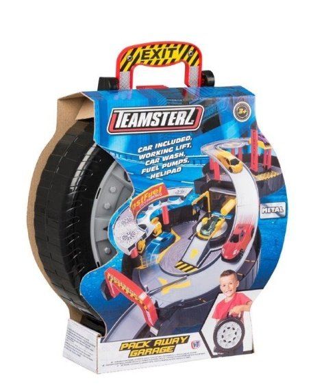 Garáž v kufříku podobném pneumatice. Obsahuje 1 autíčko, spojovací
