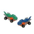 Proměňt barvu svého autíčka. Otevři zadní ozubené kolečko na hlavě piráta, vlož autíčko a pak naplň lebku teplou vodou. Rozmačkej mozek vodou, abys autíčko postříkal a změnil jeho barvu. Jakmile se autíčko promění, zatáhni za páku a spusťhoi po dráze. Když zatáhneš za páku, oko se roztočí a hádej na jakém vzoru oka se zastaví. Oko má tři designy. Napomáhá rozvoji kognitivních schopností a jemné motoriky. Vhodné pro děti od 3 let.