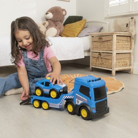Tento policejní nákladní vůz je skvělou volbou pro malé děti od 18 měsíců! Vůz je vybaven praktickou nakládací rampou, která umožňuje snadné naložení a přepravu policejního autíčka. Díky zaoblenému a robustnímu designu je ideální pro malé ručičky, které ji snadno uchopí a užijí si hru na záchranáře a policisty. Vlastnosti produktu: ? Policejní nákladní vůz s autíčkem ? Nakládací rampu pro snadný transport ? Zaoblený a robustní design ideální pro malé ručičky ? Vhodné pro děti od 18 měsíců
