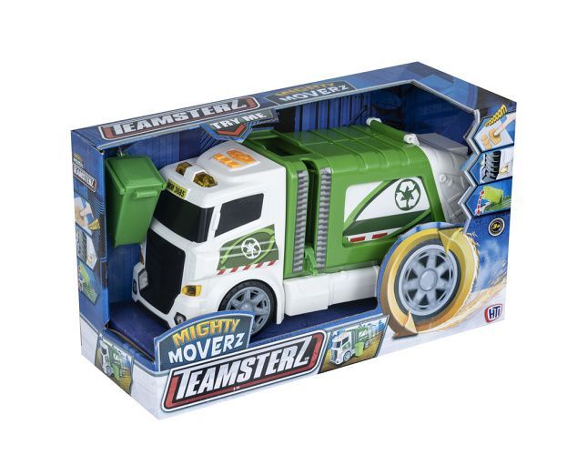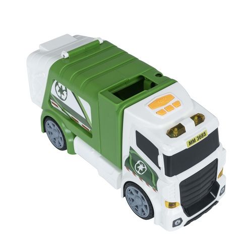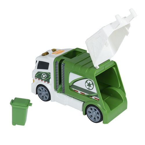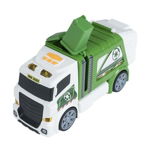 Popelářské auto, který svítí a vydává zvuky. Výrobek vyžaduje 3×