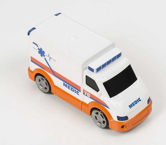 Auto je na baterie 3×LR44 baterie, které jsou součástí balení.