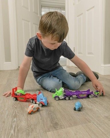 Vstupte do světa dinosaurů a dobrodružství s tímto tahačem Teamsterz, který je vybaven jedinečným designem hlav dinosaurů! Tento tahač má zadní nakládací rampu, která umožňuje snadné naložení a vyložení autíček. Součástí balení jsou dvě autíčka ve stejném dinosaurím designu, která dokonale doplňují celkový vzhled a zábavu. Tahač je ideální pro hraní a vytváření vlastních dobrodružství na cestách a při transportu dinosaurů. Díky své perfektní velikosti je snadno ovladatelný a skvělý pro malé ručičky. Tato hračka pomáhá rozvíjet kognitivní dovednosti, jemnou motoriku a kreativitu při hraní s autíčky a tahačem. Vhodné pro děti od 3 let, tento set je perfektní volbou pro všechny malé milovníky dinosaurů a aut, kteří se rádi ponoří do světa zábavy a dobrodružství!