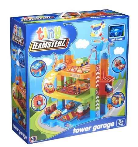 Věžová garáž Tiny Teamsterz je tříúrovňová garáž se spojovacími rampami mezi úrovněmi. Garáž má přistávací plochu pro vrtulníky, palivové čerpadlo, myčku aut, zábrany, parkovací prostory a funkční výtah pro auta. Vozidla jsou měkká a snadno se ovládají. Výrobek napomáhá kognitivnímu a sociálnímu rozvoji dítěte. Vhodné pro děti od 3 let
