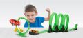 Temasterz toxic twister dráha. Obsahuje jedno zombie auto (kompatibilni s dalšími sadami tratí) a plamen. Odpalte ze startovací rampy autíčko zombie, sledujte jak projede 3 oblouky a vyletí přes ohnivý kruh ven.
