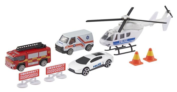 Teamsterz zárchanný tým zahrnující helikoptéru, záchranné vozidlo,hasiče, sanitku, dopňky. V nabídce ve třech různých barevnýchprovedení.