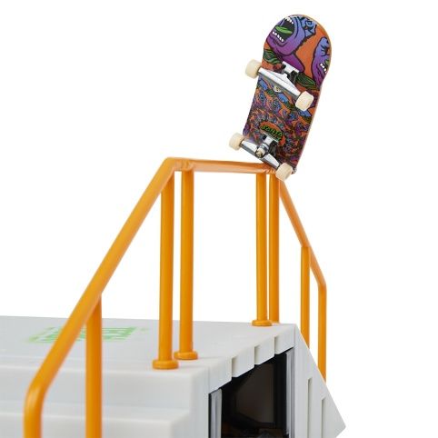 Postavte si svůj vlastní mini skateboardový park se sadou Xconnect Schody se zábradlím. Sestavte různé kombinace se schodištěm, rampami a zábradlím, abyste se naučili nové triky. Obsahuje: 1 fingerboard Tech Deck, 1 schodiště, 1 rampa, 1 nájezdová rampa, 4 malé podpěry, 1 čtvercový panel Tech Deck, 1 schodišťové zábradlí, 1 zábradlí rampy, 1 střední zábradlí, 4 nosníky , 16 X-konektorů, 8 nožek, Instrukce.
