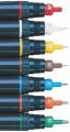 Technická trubičková pera s kvalitní funkčností, odpovídající normám ISO, DIN a?ČSN. Rozměry hrotů: 0,18 - 0,25 - 0,35 - 0,5 - 0,7 - 1,0 - 1,4 mm. Pera jsou vhodná pro studenty i profesionální konstruktéry. SLOŽENÍ SOUPRAV CENTROGRAF 9070 VÝROBEK - ŠÍŘE STOPY V mm 9070/3 - 0,25 - 0,35 - 0,5 9070/4 - 0,25 - 0,35 - 0,5 - 0,7 9070/6 - 0,25 - 0,35 - 0,5 - 0,7 - 1,0 - 1,4 NÁHRADNÍ HROTY VÝROBEK - BAREVNÝ KÓD - TLOUŠŤKA ČÁRY 9070/1-0,18 - čevená - 0,18 mm 9070/1-0,25 - bílá - 0,25 mm 9070/1-0,35 - žlutá - 0,35 mm 9070/1-0,5 - hnědá - 0,50 mm 9070/1-0,7 - modrá - 0,70 mm 9070/1-1,0 - oranžová - 1,00 mm 9070/1-1,4 - zelená - 1,40 mm