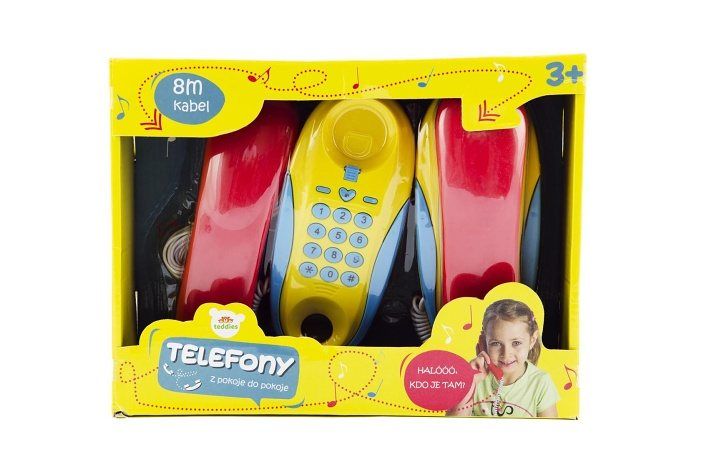 Dětské telefony umožňují vzájemné telefonování mezi dvěma pokoji, délka kabelu cca 8m.