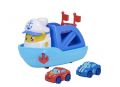Ahoj kapitáne! Připravte se na plavbu s trajektem Tiny Teamsterz. Součástí jsou 2 volná auta Tiny Teamsterz, jsou měkká a snadno uchopitelná a navržená v jasných, zábavných barvách s přátelskými tvářemi. Volný trajekt plave na vodě a pohyblivá nakládací rampa umožňuje snadnou přepravu na horní nebo spodní palubu. Kombinace všech těchto funkcí se zaoblenou estetikou činí tento vznášející se malý trajektový člun Teamsterz atraktivní pro předškolní děti a začínající námořní kapitány. Vhodné pro věk 12 měsíců +.