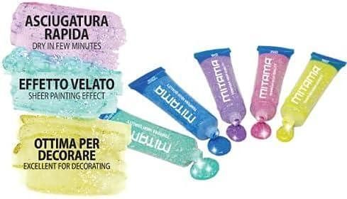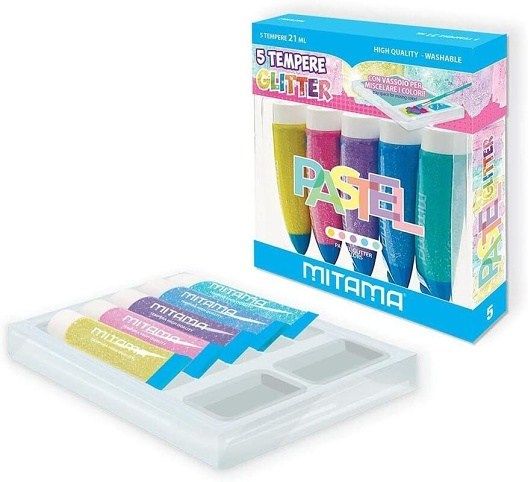 Temperové barvy se třpytkami, sada 5 barev, tuba se štětcem, MITAMA 62879