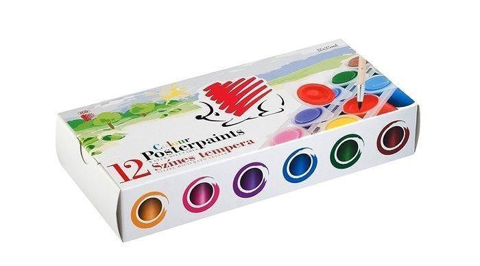 Temperové barvy, v kalíškách, 12ks, ICO "Ježek", různé barvy