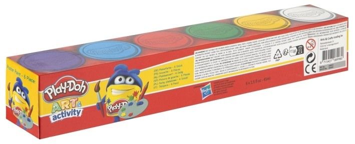 Tempery v kelímku 6 × 45 ml Play-Doh. 6 barev – bílá,žlutá, červená,zelená, modrá a fialová.