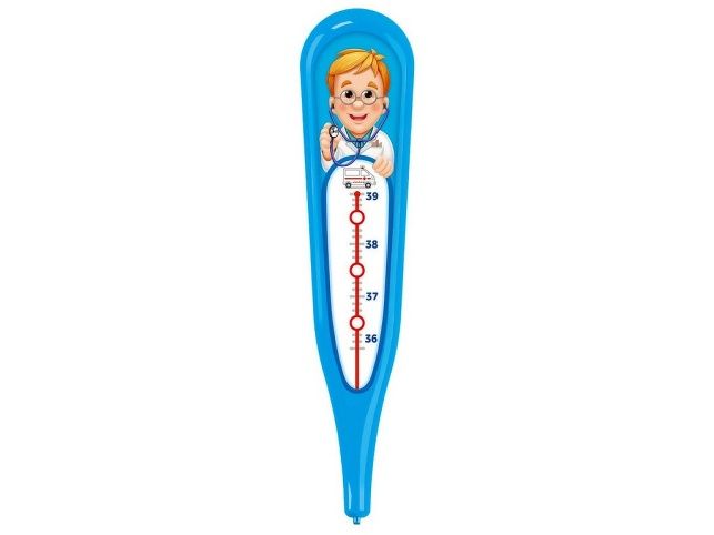 Teploměr s českým hlasem. Světlo na teploměru ukáže naměřenou teplotu a hlas doktora pacientovi poradí. Stiskem hrotu teploměr řekne jednu z osmi českých vět. Napájení 3 x 1,5V AG 13 baterie. Česká karta. Výška teploměru 16 cm. Rozměry karty 22 x 10 cm.