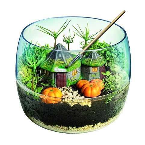 Terarium – Hagridova kouzelná zahrádka – sada pro vytvoření osobního miniaturního ekosystému v kouzelném prostředím a ve stylu Harryho Pottera! Aktivita, při které se děti pobaví a zároveň se naučí, jak je důležité starat se o rostliny. Obsahuje pařížskou sádru, formy a temperové barvy pro vytvoření Hagridovy fantastické chýše a samozřejmě dýně. Děti se mohou bavit používáním semínek, rašeliny, zeminy, písku a kamenů k pěstování přírodní krajiny plné rostlin kolem Bradavic.