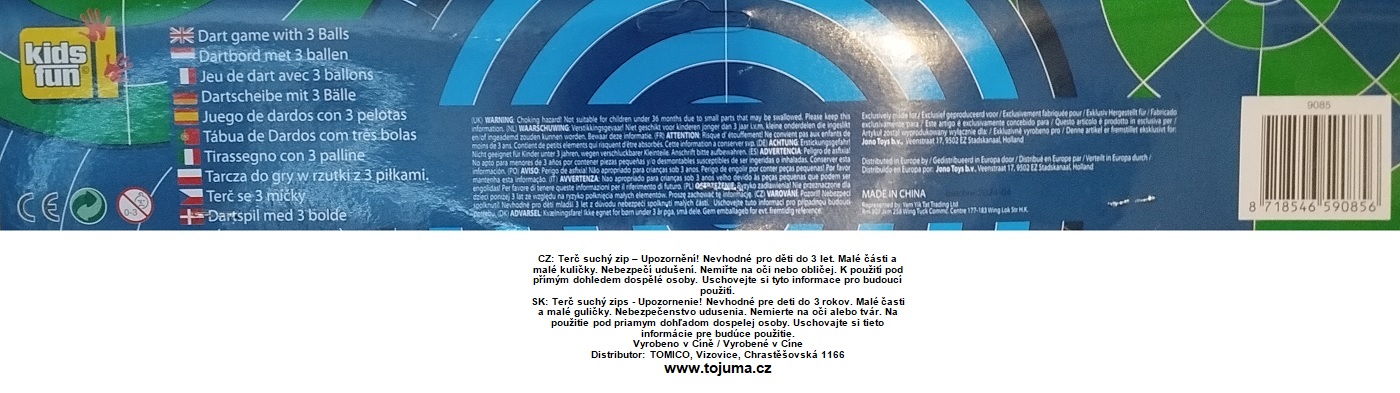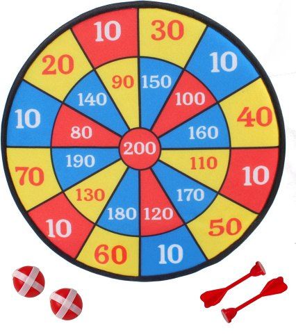 Terč na suchý zip 36 cm se 2 míčky a 2 šipkami na suchý zip, baleno v sáčku, poutko na zavěšení. Zábavná hra pro děti i dospělé.
