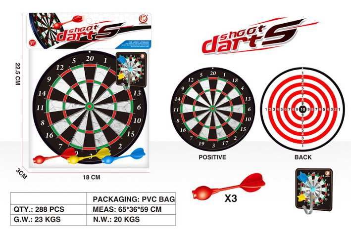 Terč oboustranný magnetický se 3 šipkami. Průměr terče 15 cm.