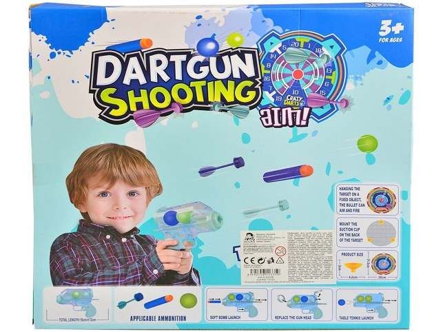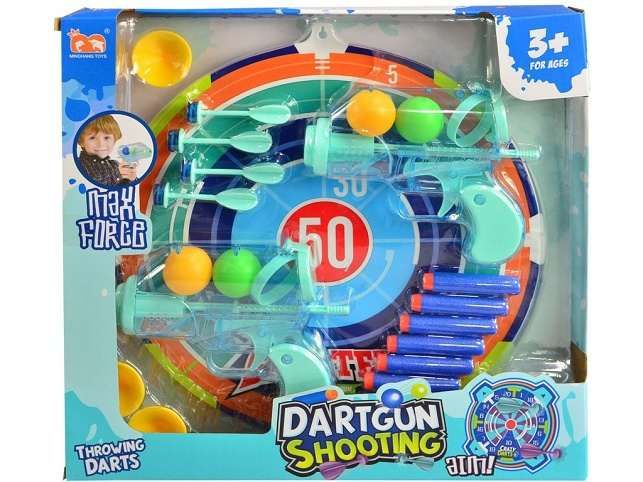 Terč s příslušenstvím obsahuje dvě pistole, které jsou na více druhů nábojů, které jsou samozřejmě součástí této sady. Jde o míčky, pěnové střelky a šipky, které jsou samozřejmě vrámci pezpečí dětí, bez ostrých hrotů. Samotný terč velice snadno přiděláte a to pomocí přibalených přísavek. Rozměr: 25 cmDoporučený věk: 3 +