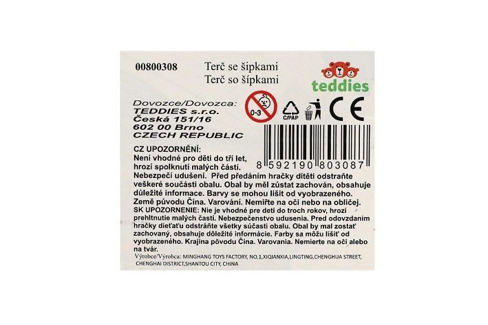 Střílení šipek na terč je velmí oblíbenou zábavou pro děti. Obsahuje 2 ks lepicích šipek a terč o průměru 23 cm.