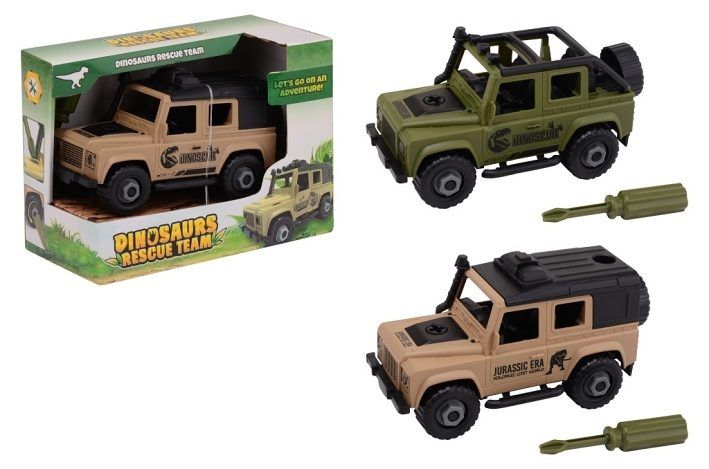 Terénní vozidlo vino Rescue Team je vyrobené z plastu. Tento skvělý džíp má za úkol zachránit dinosaury. K autu je dodáván plastový šroubovák, který lze použít na kola a kapotu. Ve dvouch probedeních hnědé a zelené.