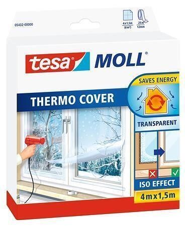 Termoizolační fólie tesamoll® Thermo Cover je průhledná nelepivá izolace pro starší okna. Po nalepení vytvoří další izolační vrstvu. Snižuje také rosení oken.