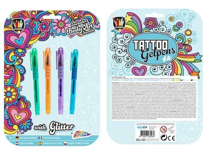 Tetovací gelová pera – balení obsahuje 4 ks v barvách, zelená, fialová, modrá a oranžová.