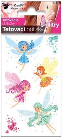 Tetovací obtisky s glitry 10,5 x 6 cm - barevné víly
