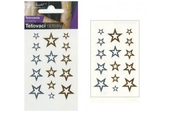 Tetovací obtisky zlaté a stříbrné 10,5x6cm hvězdy