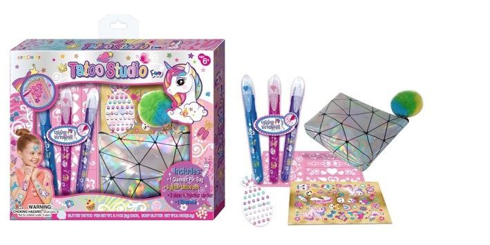 Úžasné tetovací studio, se kterým si vyzdobíš vlasy a tělo barevnými vzory i kamínky. Sada obsahuje tetování, kosmetickou taštičku, kamínky, šablony, barevná tetovací pera. Zažij spoustu zábavy a ozdob sebe i kamarády. Vhodné pro děti od 6ti let.
