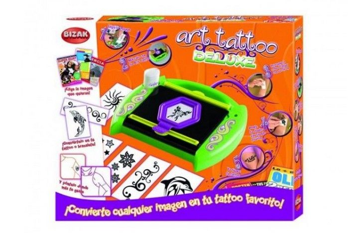 Balení tetovacího studia obsahuje: 1× Art Tattoo, 6× speciální barevný papír, 3× tetovací papír – 1× list s černým a bílým tetováním, 2× list s barevným tetováním, 1× Roll on, 2× rámeček. K obkreslení obrázku lze použít jakékoliv kuličkové pero.