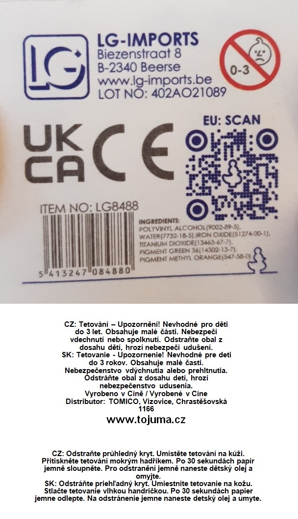 Balení obsahuje 12 různých druhů tetovaček s motivem Dinosauři, každé tetování na samostatné kartičce, součástí je grafický návod. Odběr pouze po celém balení 48 ks.
