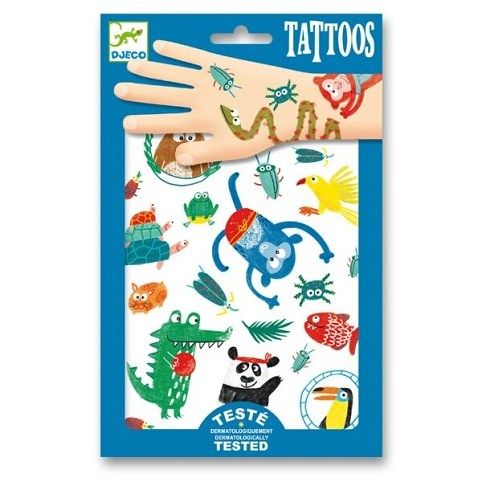 Tetování na kůži s obrázky zvířátek z jungle. Balení obsahuje 2 archy. Tetování je dermatologicky testováno a dlouho vydrží. Rozměr balení: 21 cm x 14 cm Vhodné pro děti od 3 let.